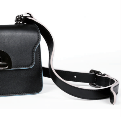 Bag made of smooth black calf leather, with leather lining, brass accessories and gunmetal palladium finishes.
