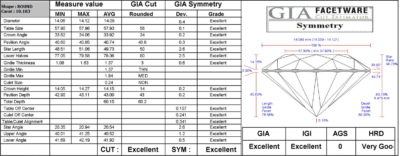 | BIS | BIC | TOI | EyeClean | Luster | CrownHeight | PavalionHeight | PavalionAngle | GirdleDesc | GirdleMinMax% |