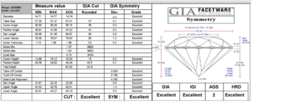 Discount from Rap% Color Clarity Cut Polish Symm Fl FC Diam/LxW/TD(mm) TD% Tab% Grd% CrAngPer HA Ratio TI