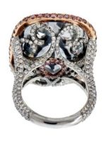 30.11 Natural Fancy Blue Gray VVS2 Cushion Cut Diamond (Center Stone) Surrounded By Pave’ Set 3.48 Ct Pink Diamonds Mounted In 18K Rose Gold And White Diamonds On Gallery And Shank Mounted In Platinum.
