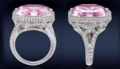 GIA Certified 28.03 Ct. Fancy Purple Pink VS2 Radiant Cut Diamond Surrounded By 2.18 Ct. Pave’ Set White Diamonds Mounted In Platinum.